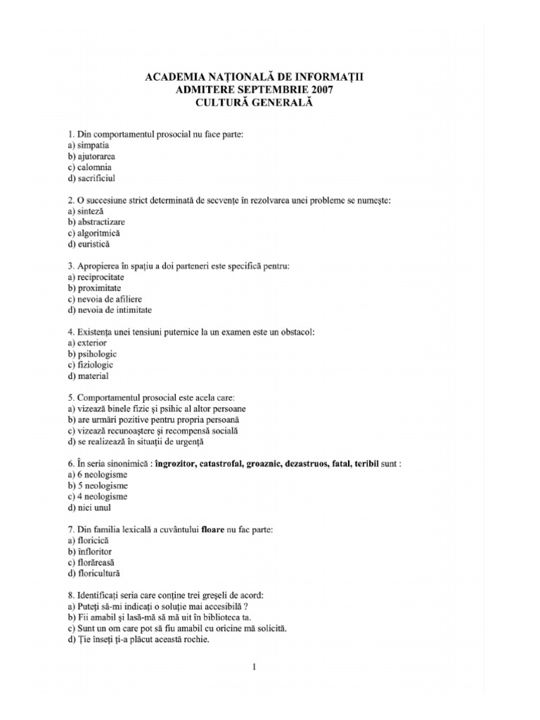Parfait pour préparer un concours ou simplement étendre vos connaissances. Un test de cultură generală pentru angajarea la serviciul român de informaţii este unul complex. Test de cultură generală sri.